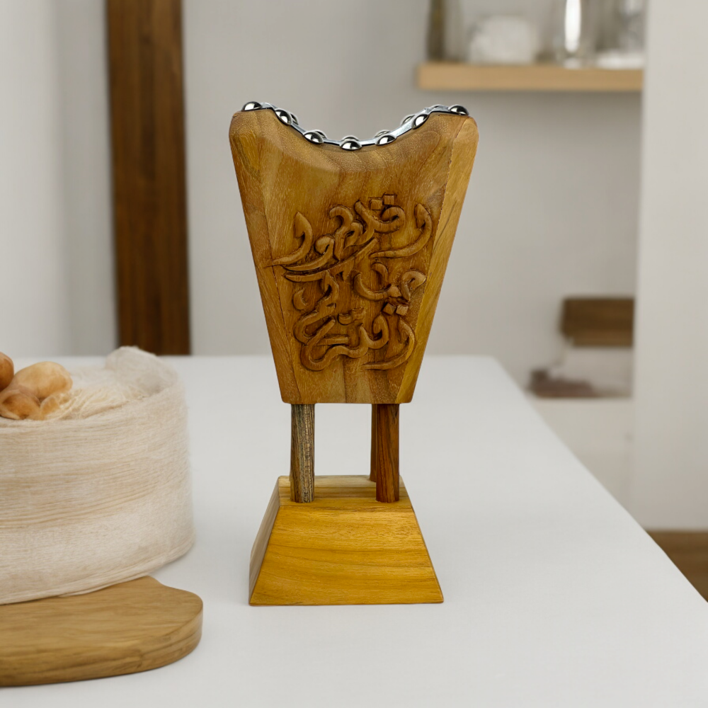 مبخرة "اقلطوا حياكم الله" مصنوعة من خشب التك الفاخر، تجمع بين الأصالة والتصميم العصري. تحمل نقوشًا مميزة تعبر عن الترحيب والضيافة، مما يجعلها مثالية لمناسباتك الخاصة. تصميمها الفريد يضفي لمسة أنيقة على أي مساحة، بينما تعمل على نشر الروائح العطرة التي تخلق أجواء دافئة ومريحة. تعتبر هذه المبخرة هدية رائعة للتعبير عن المشاعر الطيبة، وتجعل من كل زيارة لحظة مميزة تعكس روح الكرم والاحتفال.