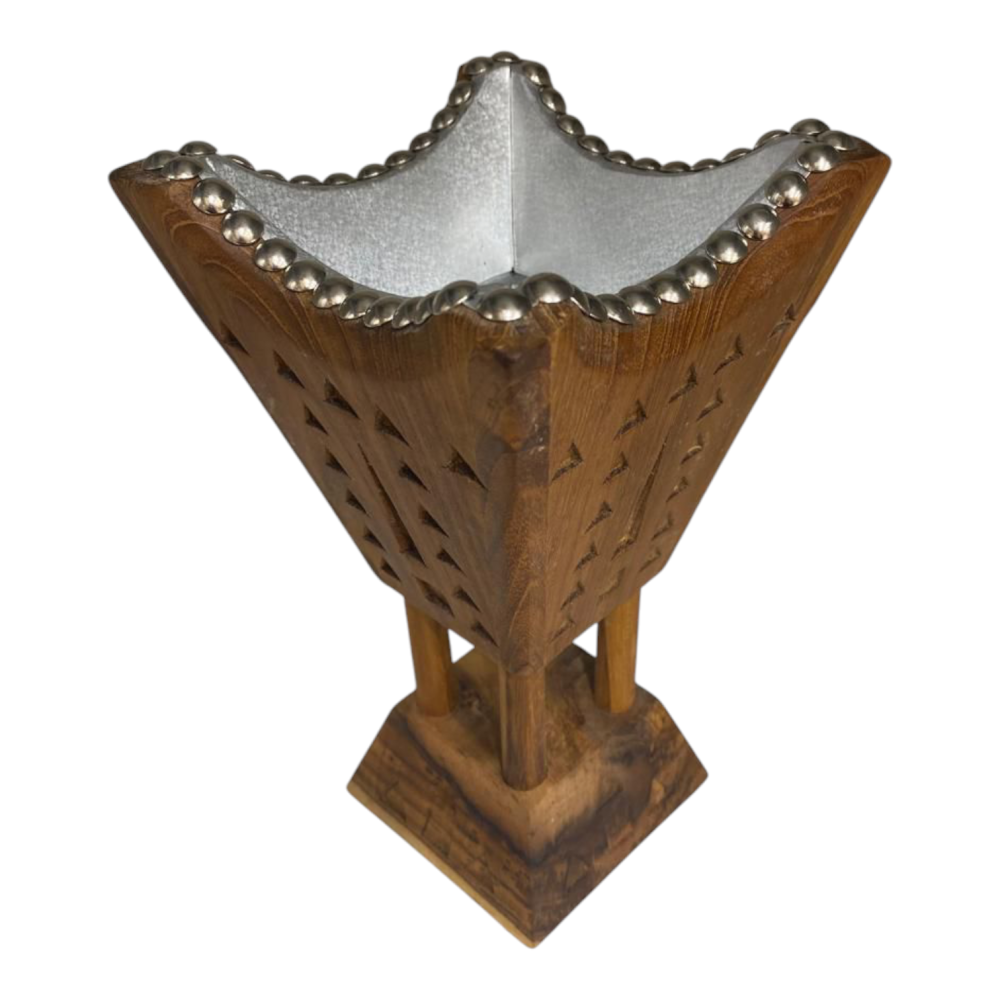 مبخرة الطراز السليماني من خشب التيك، تتميز بتصميمها الفريد الذي يجمع بين الحرفية التقليدية والأناقة. بمقاس 12×12×20 سم، تعتبر هذه المبخرة مثالية لتزيين أي مساحة. لونها البني الدافئ يبرز جمال الخشب الطبيعي مع تفاصيل منقوشة تضيف لمسة فنية رائعة. تعد خياراً مثالياً لإشعال البخور، حيث تضفي أجواءً مريحة وعطرة على المكان. تجمع بين الجمال والوظيفة، مما يجعلها قطعة فريدة لكل منزل.